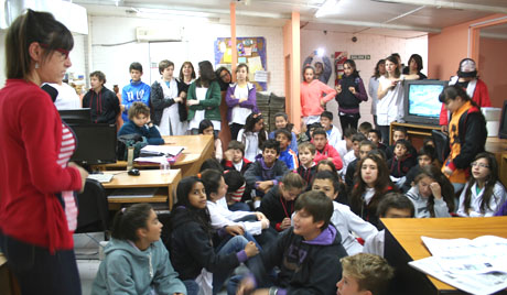 “El Diario de Madryn”, es el único de los periódicos que cuenta con la imprenta en el mismo establecimiento, por lo que los chicos, luego de visitar el área de redacción y diseño, continuaron su recorrido por la planta baja, donde descubrieron un mundo de máquinas, papel y tinta. Allí se les explicó la forma en que trabajan las imprentas y el proceso que arranca en el mono y termina en el intercalado de las hojas. Como no podía ser de otra forma, los chicos hicieron gran cantidad de preguntas, sobre todo porque descubrieron la forma en que se imprime un diario. Antes de retirarse, Julieta, una de las alumnas de sexto grado de la Escuela 158 dijo: “Me gustó mucho la excursión. Me pareció interesante ver cómo trabajaban las distintas áreas, cómo cada uno hacía su tarea y también cómo se trabajaba en grupo. Me llamó la atención la cantidad de personas que forman parte del diario, y las máquinas, cómo se imprimía todo”.