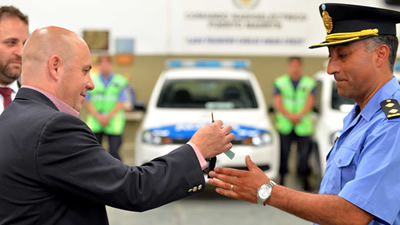 En la ceremonia se entregaron cinco móviles para el Comando Radioeléctrico de de Madryn, 3 camionetas para Pirámides, Gastre y Telsen, además de motocicletas y material de comunicación para cada una de las dependencias policiales que tienen jurisdicción en Madryn. Cada unidad cero kilómetro se puso en funcionamiento a partir de ese momento para que sea utilizada por la fuerza de seguridad, a modo de reforzar y renovar los recursos disponibles.