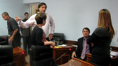 En el recinto se encontraban familiares, alumnos y allegados del profesor Miguel Ambrosio Palomino, cuyo nombre figuraba en el orden del día para ser asignado al escenario del anfiteatro de Playa Unión, los cuales debieron retirarse al frustrarse la reunión legislativa municipal.