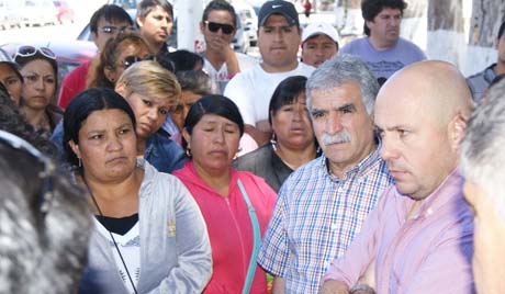 Sastre salió a la calle para dialogar con la gente que estaba en las puertas del Municipio y que mantiene un nivel de incertidumbre por el futuro de la empresa local que tiene más de mil familias sin confirmación de sus puestos de trabajo.