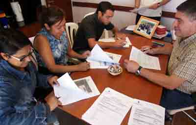 Ayer, la Oficina de Empleo de la Municipalidad fue escenario de un encuentro encabezado por el titular del área, Víctor Ascagorta, y cuatro beneficiarios de la línea de Empleo Independiente, quienes se acercaron a firmar los formularios correspondientes con el objeto de solicitar refinanciamiento a sus proyectos iniciados desde hace un año. En tanto, una de las emprendedoras firmó su propuesta para solicitar financiamiento al Ministerio de Trabajo, Empleo y Seguridad Social de la Nación.