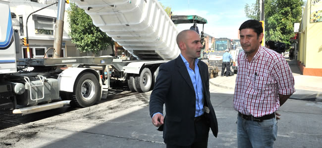 Massoni recorrió obras de repavimentación en la calle 9 de Julio
