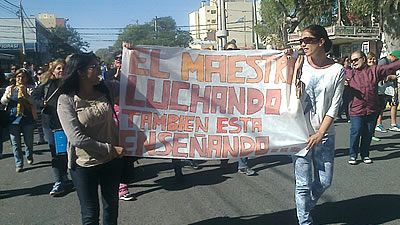 Mariana Antonino, maestra de la Escuela 219, y una de las voces cantantes de la marcha dijo: “La dirección de la ATECH se vio obligada a generar este paro, pero no confiamos en esta dirección, ni hablar de la vergonzosa actitud del señor dirigente de SITRAED que dejó a sus afiliados totalmente solos. En esta marcha hay un montón de afiliados del SITRAED que están solos y están haciendo paro en contra de sus direcciones gremiales, por lo tanto vemos la necesidad de autoconvocarnos y mover por abajo, porque la dirección gremial que tenemos no nos garantiza la continuidad de la lucha. Pedimos por favor el apoyo de la comunidad, que entiendan que la problemática educativa va más allá de los salarios y que en esta pulseada nos jugamos todo”. Además, Antonino agregó que “yo soy afiliada de la ATECH y yo creo que ellos tienen la obligación de salir a luchar, nosotros no queremos fragmentar a los docentes ni queremos generar otro sindicato, pero sí los queremos obligar a que encabecen la lucha y que estén al servicio nuestro. Que dejen sus simpatías políticas por los gobiernos de turno y que defiendan los derechos de los trabajadores de la educación”.