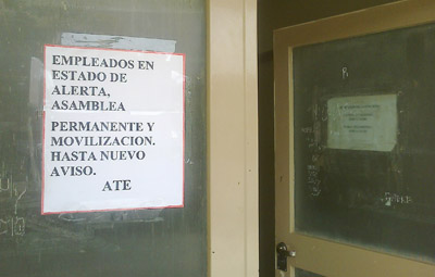 Al llegar a la puerta del Registro Civil de la calle Gobernador Gallina, un cartel en la puerta indica acerca de la propuesta de los trabajadores, quienes, sin embargo, continúan con sus tareas habituales: “Los compañeros están trabajando, pero cada tanto hacen una pequeña asamblea para ver cómo van a seguir adelante. En ese sentido hoy al mediodía (por ayer) ATE Provincia estaba haciendo una asamblea con todos los compañeros de los Registros Civiles para ver cómo seguimos adelante. Si bien Puerto Madryn nuevamente hace punta con este reclamo, toda la provincia tiene el mismo conflicto”, dijo Di Paul, quien agregó que “en este momento es este solo el que está en esta situación, pero lo vamos a llevar a todos los Registros Civiles”.
