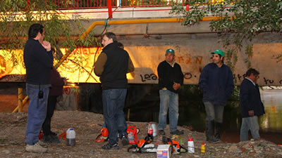 Posteriormente, el Intendente se dirigió hacia el lugar de emplazamiento del Puente Maffía, lindante a la Planta Potabilizadora de la Cooperativa Eléctrica, en el sector sur de la ciudad. Allí supervisó los trabajos de limpieza que personal municipal estaba realizando en ese momento y pudo observar la importante cantidad de ramas e incluso árboles que se extrajeron de la estructura del puente y que conllevaban el riesgo de obstrucción de la toma de agua de la planta.