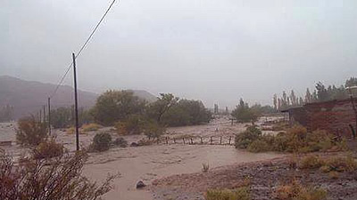 Telsen es uno de los lugares más perjudicados por el temporal que, según estimaciones, superó ya los 140 milímetros de agua caída, algo inusual para esta comarca que viene de atravesar una de las sequías más extensas de las que se tenga memoria.