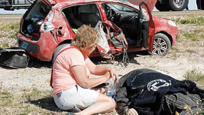 Minutos después de las 9:15 del día jueves, a la altura del kilómetro 1780 de la Ruta 3, un Fiat Palio dominio MOM-381 en el que viajaban Julio Valderrama, su esposa Berta Ávila y el hijo de la familia identificado como Braian Leal (23) mordió la banquina, se cruzó de carril y terminó dando varios tumbos por el costado de la ruta.