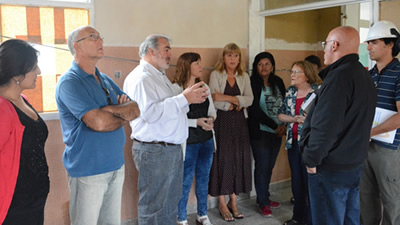 El ministro de Educación del Chubut, Rubén Zárate, verificó el grado de avance de las obras de ampliación y refacción que se ejecutan en escuelas del barrio Laprida de Comodoro Rivadavia, como parte del plan de infraestructura escolar que sumará 40 nuevas aulas en toda la provincia para el inicio del ciclo lectivo 2015.