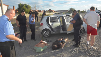 Todo esto fue llevado e introducido en el automóvil, pero alertado un vecino dio aviso a la policía que se aproximó en forma inmediata, para comenzar una persecución que culminó en El Cármen y Rivadavia, donde los sospechosos fueron bloqueados por un camión de la brigada de investigaciones y resultaron aprehendidos.