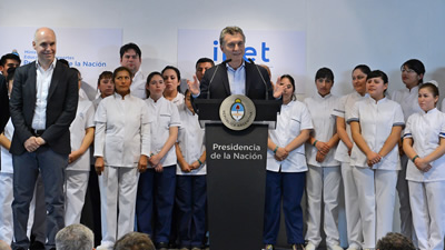 Junto al jefe de Gobierno porteño, Horacio Rodríguez Larreta; de los ministros de Educación y Deportes, Esteban Bullrich, y de Salud, Jorge Lemus; y el director del Inet, Gabriel Sánchez Zinny, Macri afirmó que “tenemos que ocuparnos seriamente de esta deserción en la carrera, que es enorme, porque de cada 10 que entran a estudiar, más de siete abandonan; y ahí es donde vimos que hace falta mejor infraestructura, más instrumental, mejores programas”.
